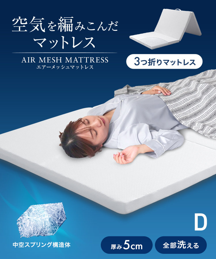 マットレス 高反発 ダブル 三つ折り 厚さ5cm 洗える エアー 高反発マットレス 折りたたみ 敷き布団 通気性 腰痛 寝具 マットレストッパー ベッド