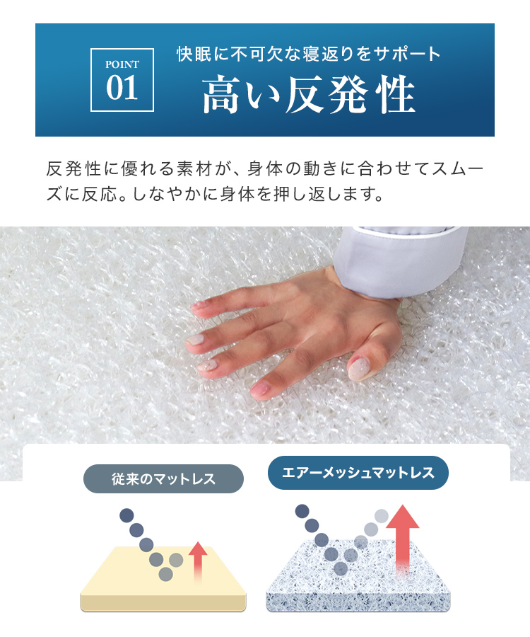 厚み2のエアーメッシュの高い反発性で寝返りをサポート!