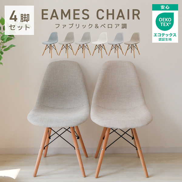 ダイニングチェア 4脚セット イームズチェア 椅子 イス おしゃれ ベロア ファブリック DSW リプロダクト 北欧 木脚 滑り止め付き 家具 デザイナーズ リビング
