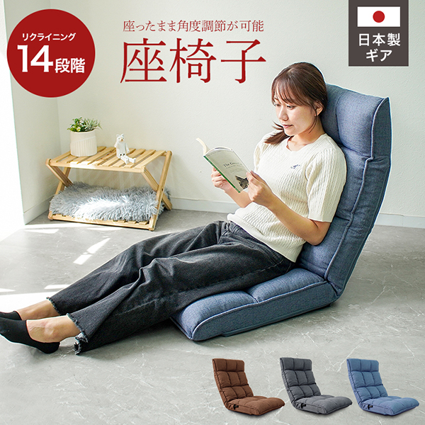 座椅子 1人掛け おしゃれ コンパクト レバー式 リクライニング ファブリック ハイバック 日本製ギア ソファベッド ヘッドレスト 腰痛対策 新生活 座いす WEIMALL