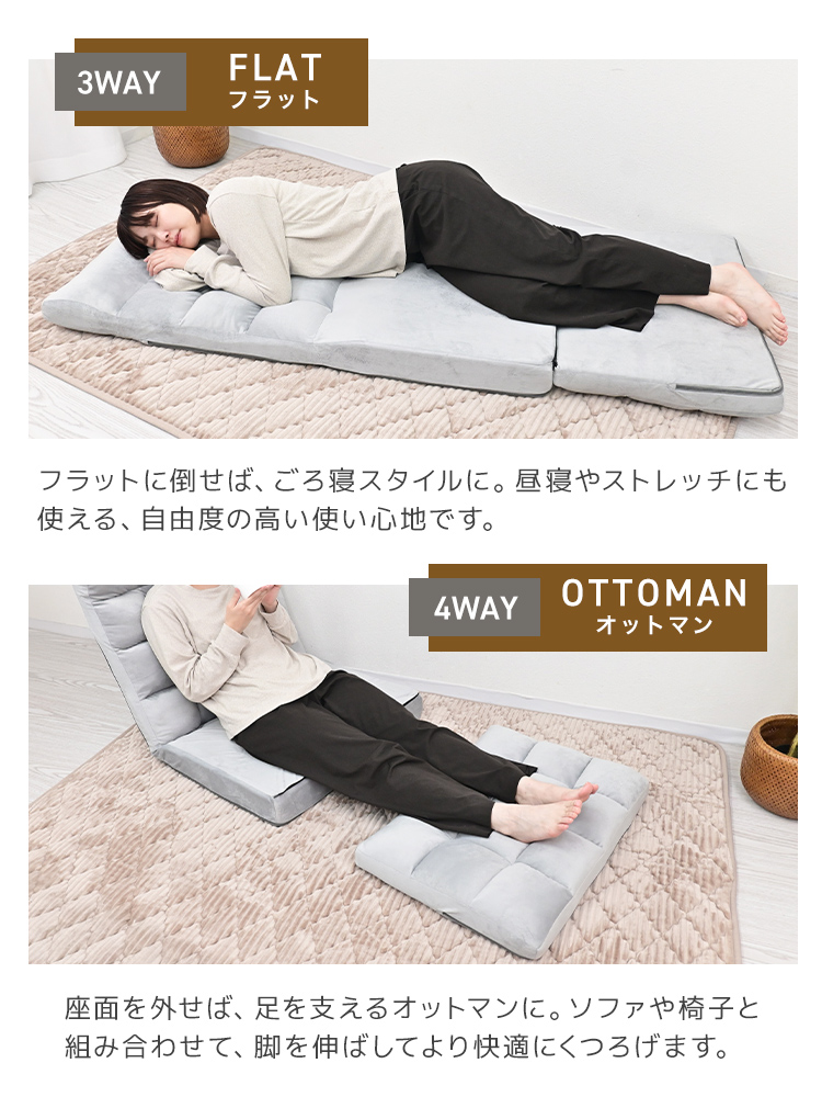スタイルは4通りに変化し、座面クッションは分離可能でお手入れや収納にも便利。