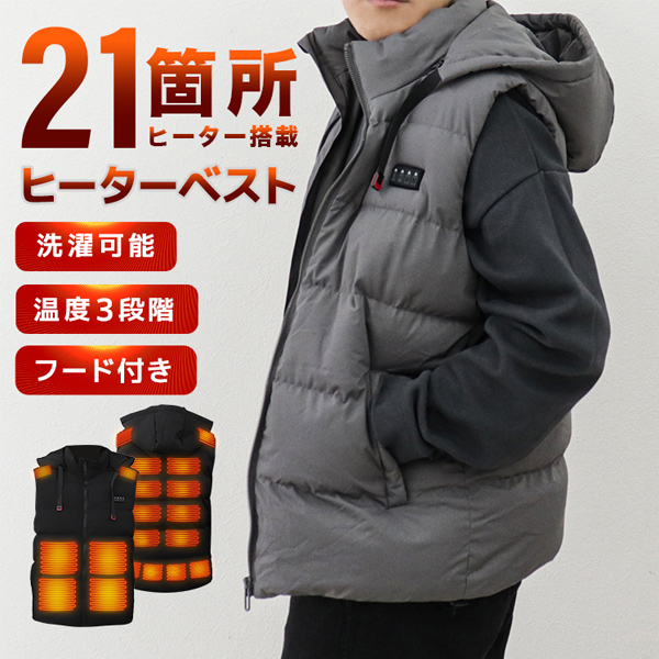 電熱ベスト フード付き 電熱ジャケット 21エリア発熱 ヒーターベスト 3段階温度調整 軽量 洗える 撥水 防寒着 ヒートベスト 作業着 男女兼用 冬 寒がり WEIMALL