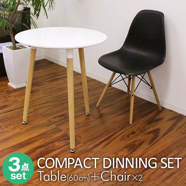ダイニングテーブル チェア 2脚セット 丸テーブル 2人用 3点セット 60cm イームズチェア DSW リプロダクト ジェネリック家具 ラウンド カフェ風 北欧 WEIMALL