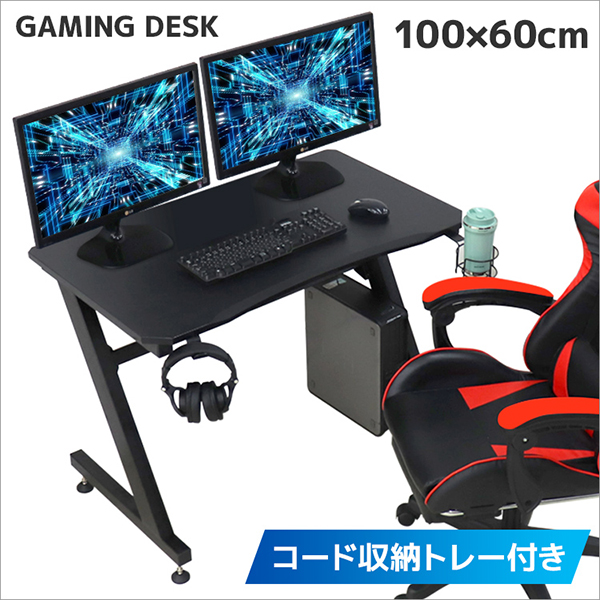 幅100cmのワイド天板!広々、ゆったりと使えるゲーミングデスクです!