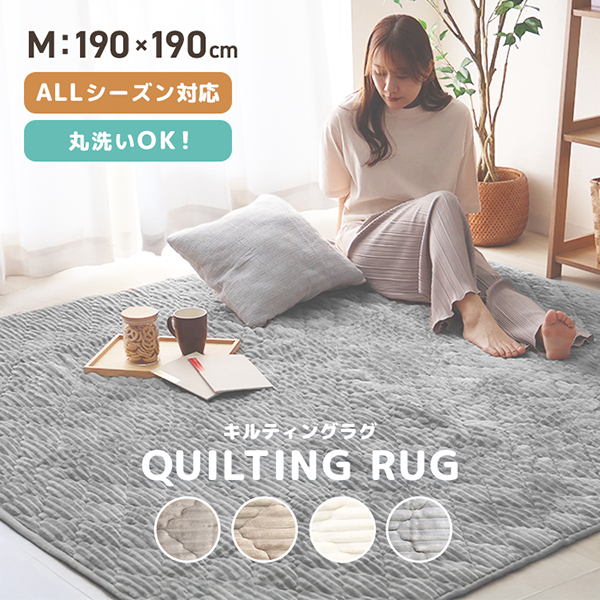 ラグ カーペット ラグマット 洗える 2畳 190×190cm キルトラグ キルティングラグ おしゃれ 厚手 秋 冬 北欧 絨毯 オールシーズン 防ダニ 抗菌 防臭