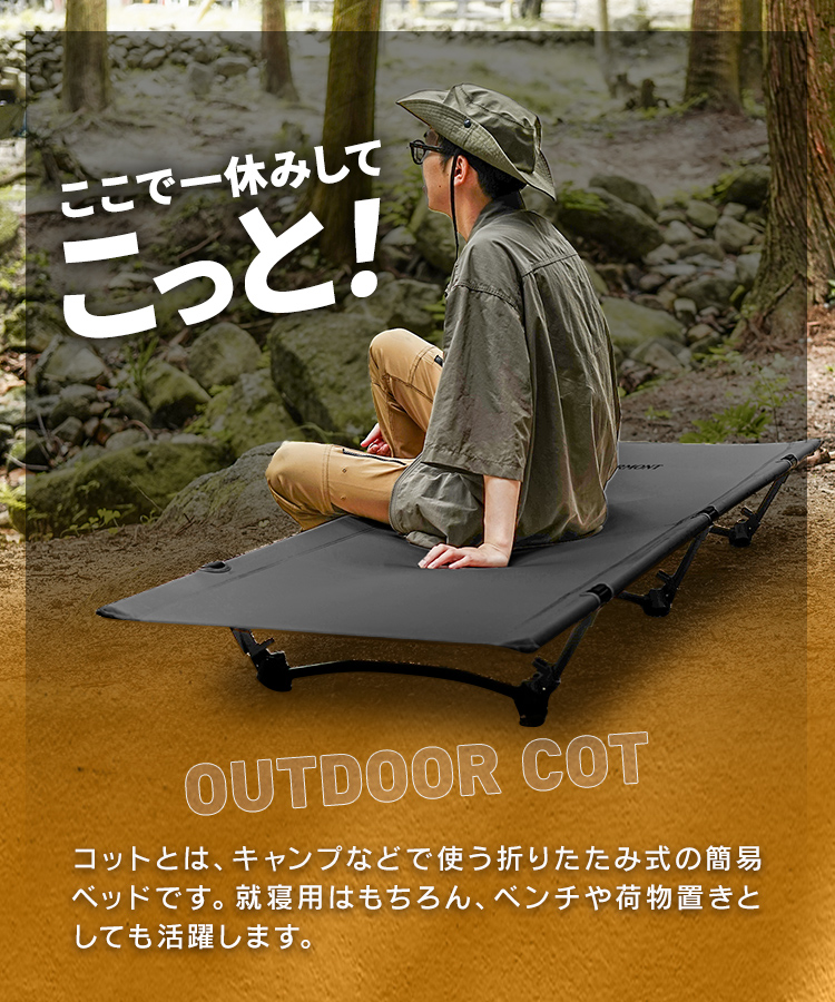 コット フォールディングコット キャンプ ベッド ワイド 折りたたみベッド コンパクト 折り畳み 簡易ベッド 軽量 アウトドア