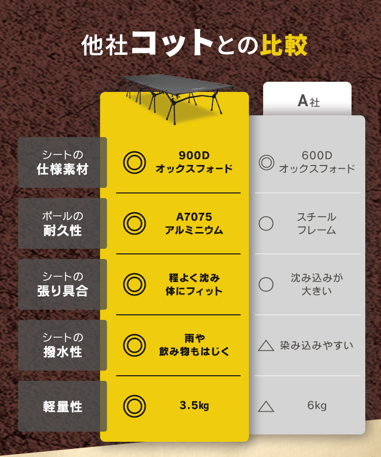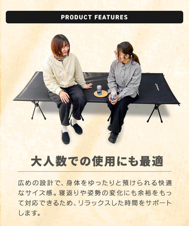 地面の凹凸や湿気を気にせず、まるで自宅のベッドのような快適な寝心地を実現!