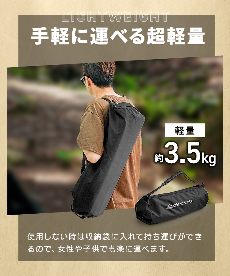 ・使わないときは折りたたんで収納袋にサッと収納!持ち運びにも便利な軽量設計