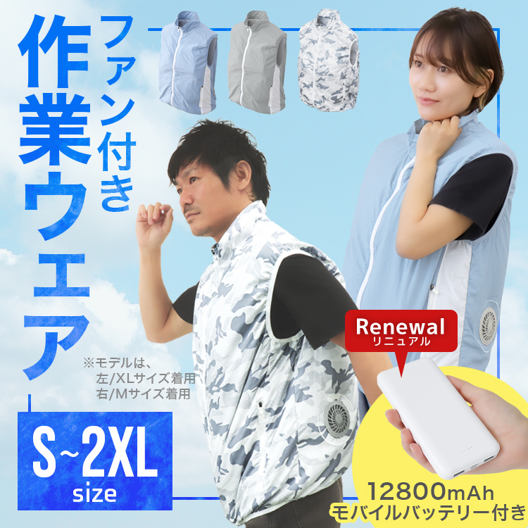 空調作業服 モバイルバッテリー付き ファン付き作業ウェア ベスト 男女 扇風機 静音 軽量 洗える 空調 冷感 夏 農作業 熱中症対策 省エネ WEIMALL 2023