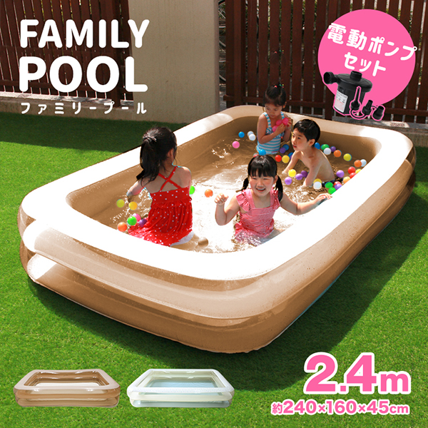 (プール ビニールプール 家庭用プール 子供用 ビニール 大型プール ファミリー 自宅用 キッズプール キッズプレイプール ファミリープール ベランダ おしゃれ かわいい バルコニー 庭 キッズ 子ども用 水遊び 長方形 四角 電動 大きい 庭 ベランダ テラス 夏 アウトドア 夏休み 空気入れ ポンプ 電動 イベント)