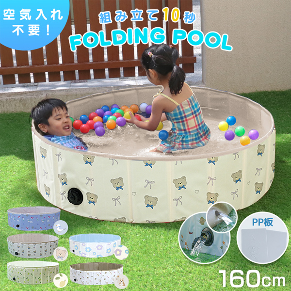 プール 折りたたみプール 家庭用 大型 空気入れ不要 160cm 子供用 ビニールプール ペット 犬 キッズプール ボールプール 折り畳み 砂遊び 水遊び 自宅プール 庭