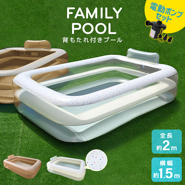 そんな方にもご満足いただける、約2メートルのファミリープール&電動ポンプのセットです。