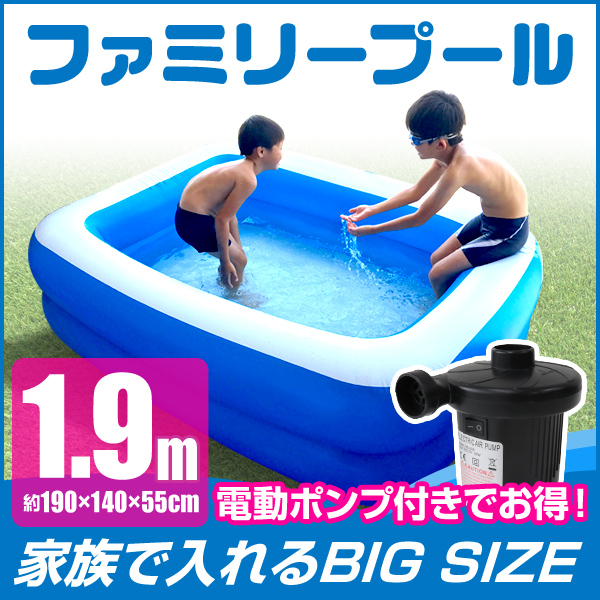 ビニールプール プール 家庭用 1.9m 電動ポンプセット 全3色 大型 ファミリープール キッズプール 家庭用プール 大容量 子供用 ベランダ 庭