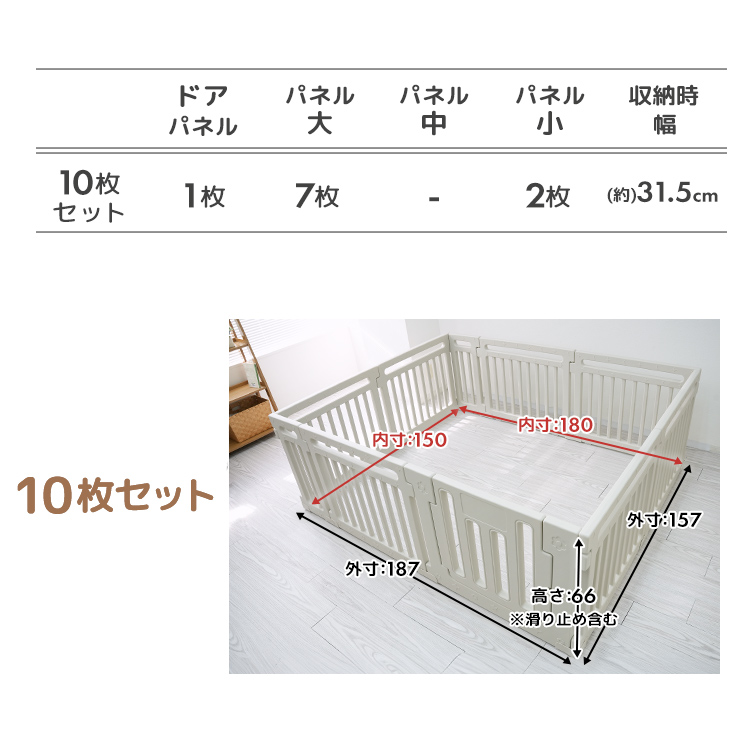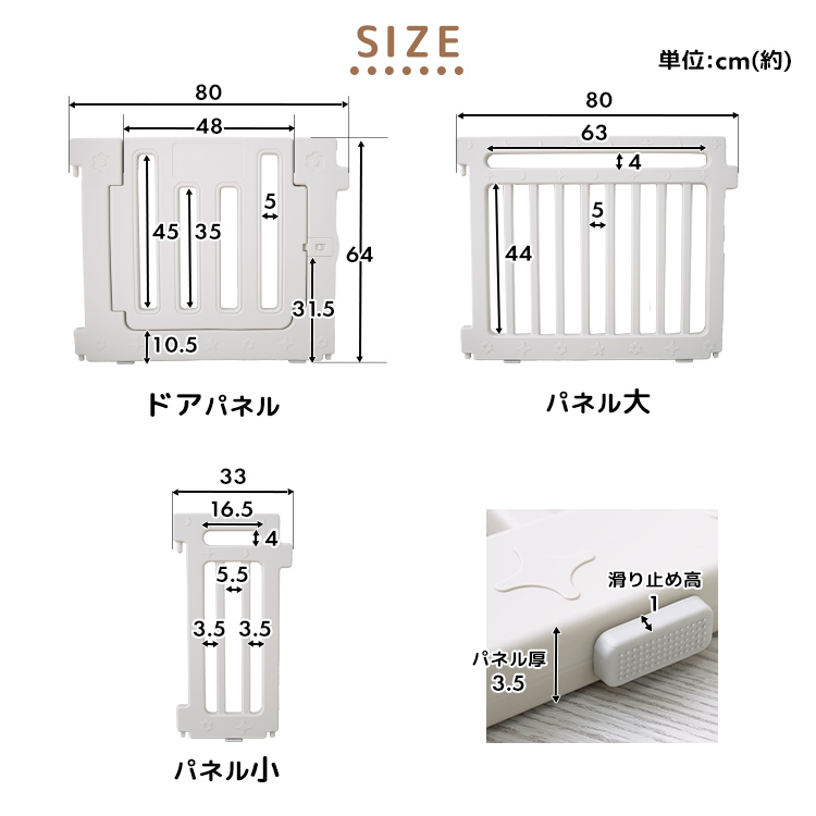 高さ約66cmのハイタイプ仕様で、つかまり立ちやつたい歩きを始めたお子さまが乗り越えにくく、しっかりガードします。