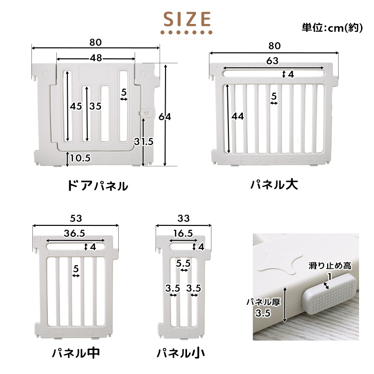高さ約66cmのハイタイプ仕様で、つかまり立ちやつたい歩きを始めたお子さまが乗り越えにくく、しっかりガードします。