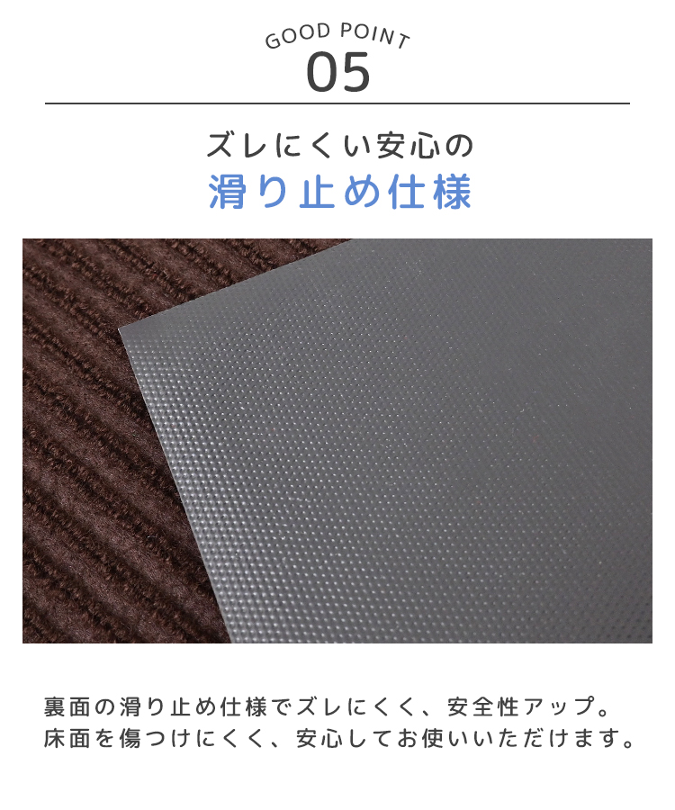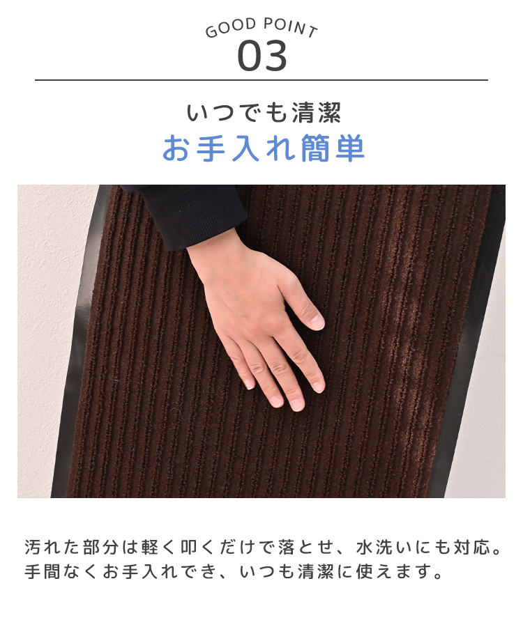 雨の日でも吸水性が高く、水分を素早く吸い取り、床を清潔に保つ効果があります。