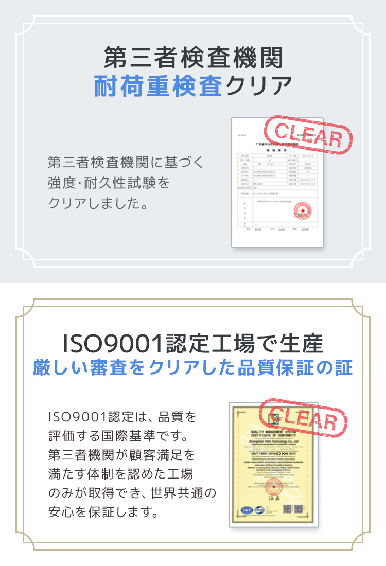 耐荷重150kgの頑丈設計で体格の大きな方にも対応。
