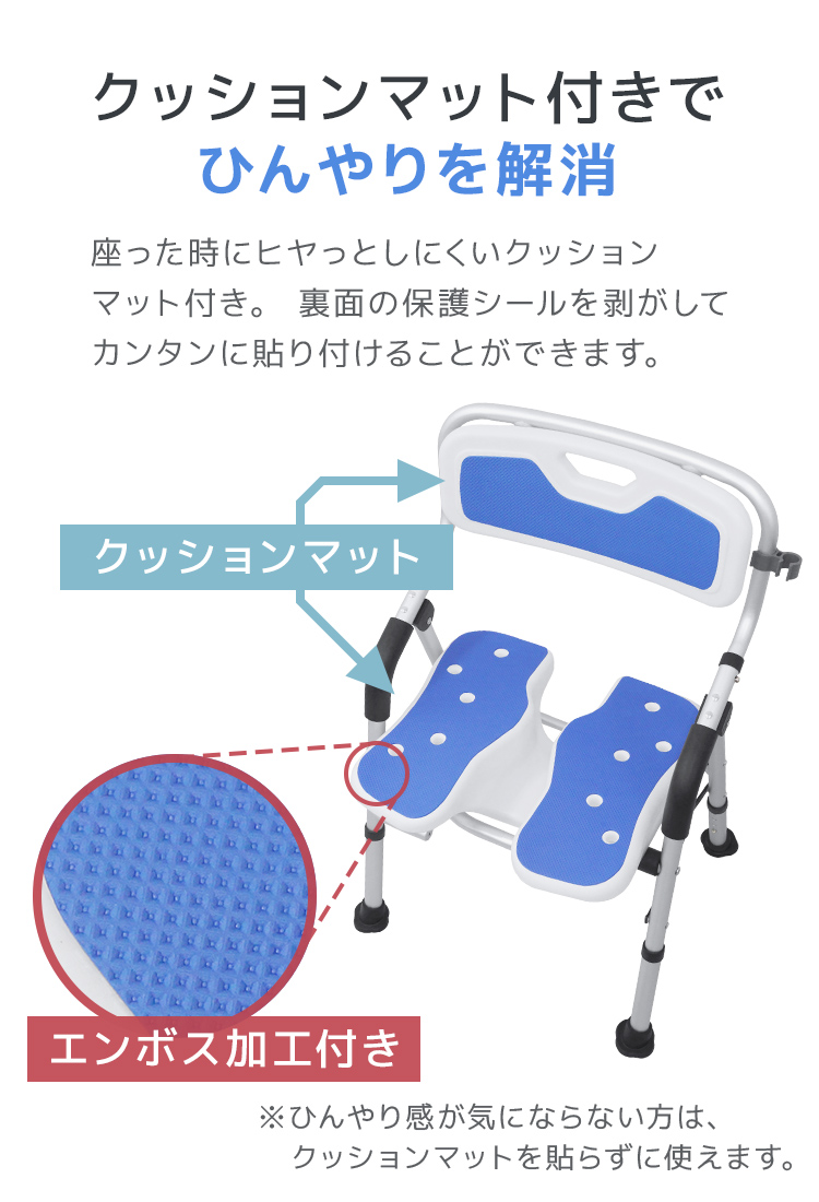 シャワーチェア 介護用 折りたたみ U字溝座面 肘掛け付き 背もたれ クッションマット 高齢者 妊婦 入浴用風呂椅子 耐荷重150kg