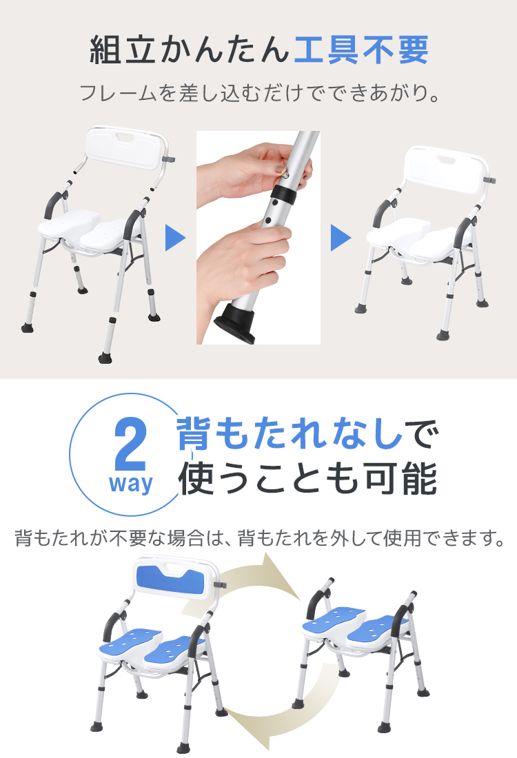 高齢者の入浴補助はもちろん、妊娠中やケガ・術後で立ち座りが不安な方にもおすすめの入浴介護用品です。