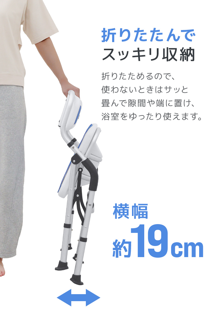 狭い浴室や脱衣所でも場所を取らず、在宅介護やリハビリに最適です。