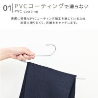 滑りにくいPVC樹脂の特殊加工により、大切な衣類をしっかりキャッチ!型崩れや落下の心配もなし。