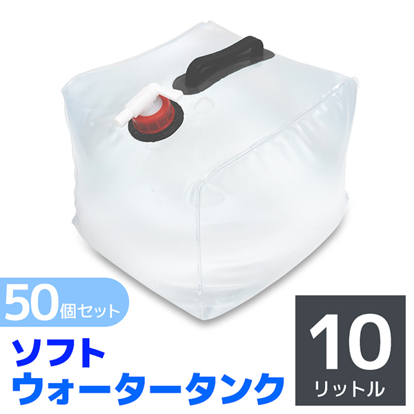 ウォータータンク 10L 50個セット 折りたたみ 防災グッズ キャンプ レバー式蛇口 コック 給水タンク ポリタンク 大容量 BBQ アウトドア 断水 災害 非常用