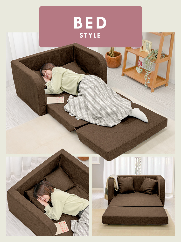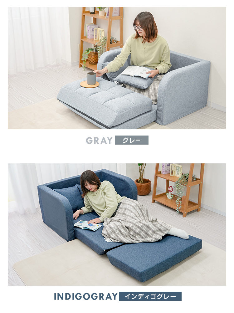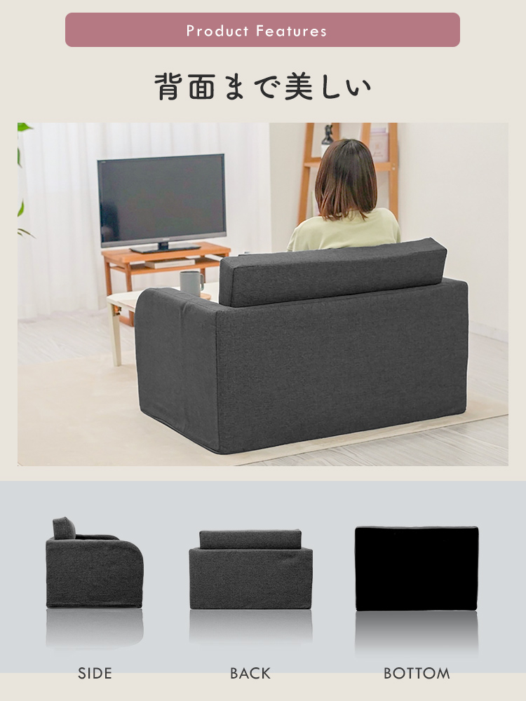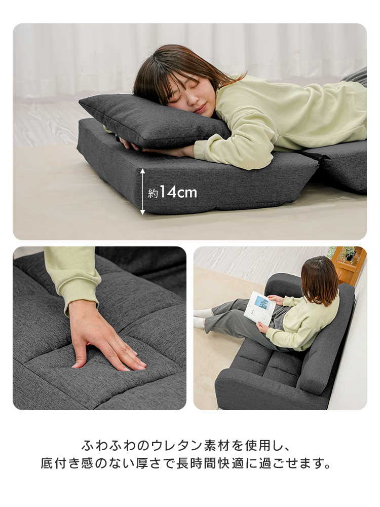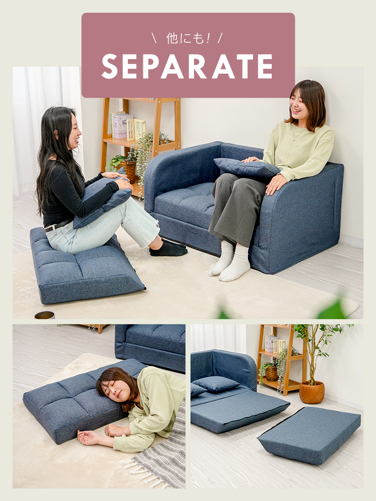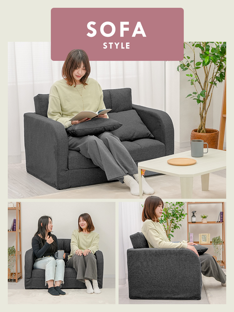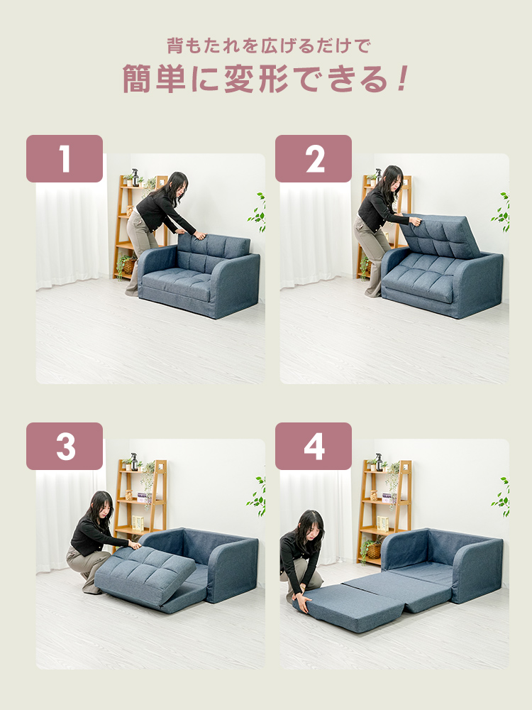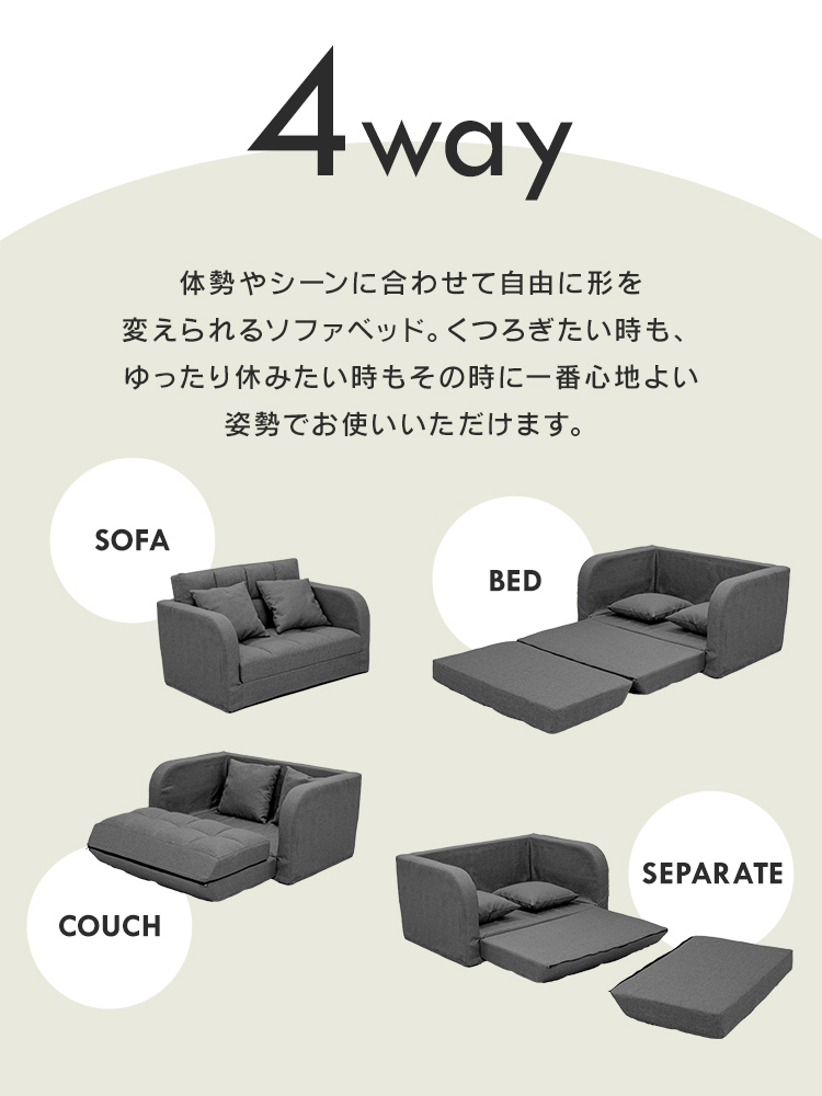 体勢やシーンに合わせて自由に変形できる4WAYソファベッドです。