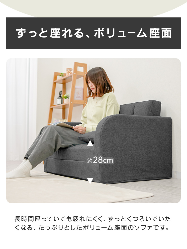 ソファベッド おしゃれ 2人掛け シングル 折りたたみ クッション付き ファブリック素材 ソファ カウチ ベッド セパレート コンパクト 一人暮らし