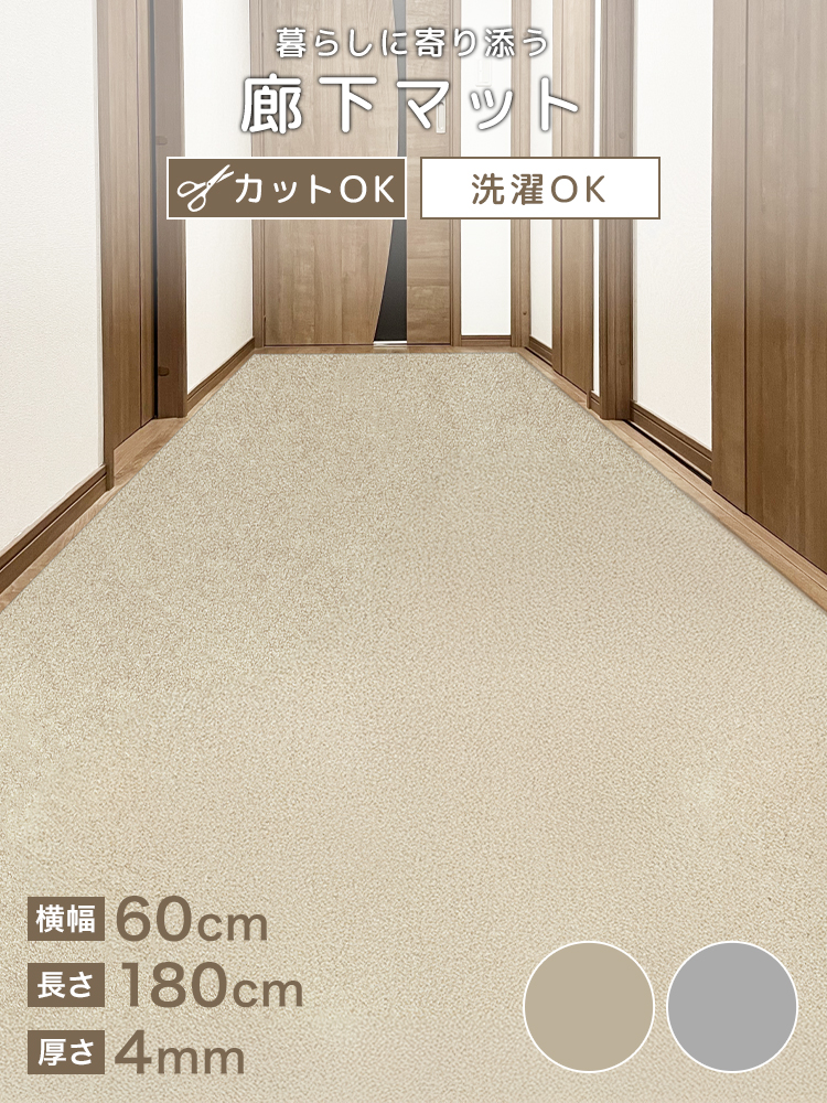 廊下 カーペット 廊下マット ロング 廊下敷き 幅60cm 1.8m ロールカーペット 廊下用 絨毯 滑り止め 洗える 傷防止 カット自由 フロアマット 犬