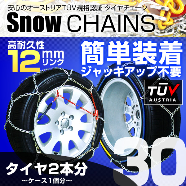 タイヤチェーン 金属 スノーチェーン 12mm 30サイズ 155/80R12 165/70R12 155/65R14 165/70R12 等 亀甲型 雪対策 車 カーチェーン
