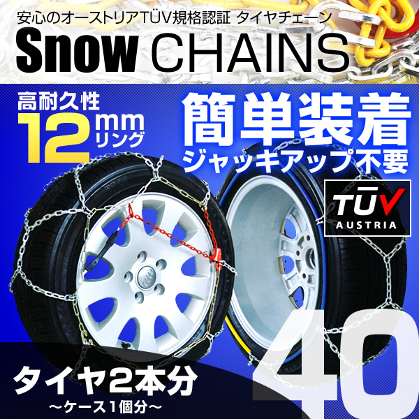 タイヤチェーン 金属 スノーチェーン 12mm 40サイズ 135R15 145R14 155/70R14 165/70R13 175/60R14 等 亀甲型 車 カーチェーン