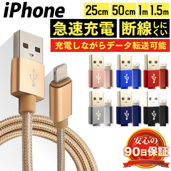 iPhone 充電ケーブル 長さ 25cm 50cm 1m 1.5m 断線しにくい 急速充電 データ転送 ライトニングケーブル iPod iPad 充電 コード USBケーブル アイフォン