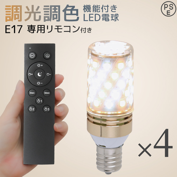 LED電球 E17 筒形 調光 調色 led照明 60W相当 4個セット リモコン付き 720lm 電球色 昼白色 昼光色 工事不要 天井照明 無段階調色調光 PSEマーク認証 リビング