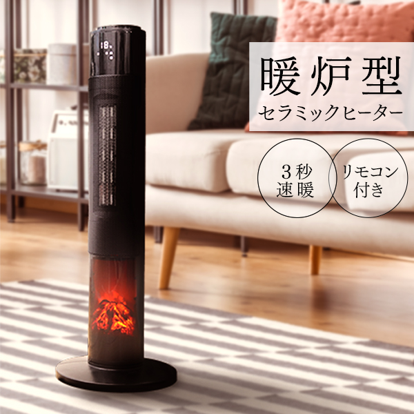 セラミックヒーター 即暖 省エネ 暖炉型 足元 ファンヒーター 暖房器具 タワーファン 安全 温度調整 リモコン付き 電気ストーブ 間接照明 おしゃれ