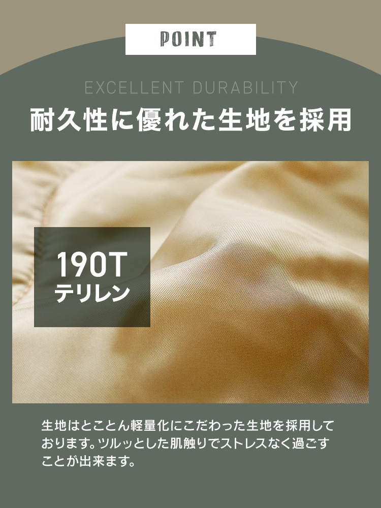 保温性・速乾性に優れ、アウトドアでも快適な寝心地を実現します。