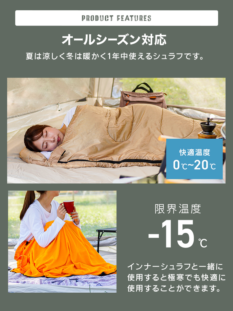 寝袋 冬用 最強 シュラフ コンパクト 封筒型 -15℃ 190T 撥水 キャンプ 洗える ねぶくろ アウトドア 連結可能 オールシーズン 防災グッズ 車中泊 暖かい 登山