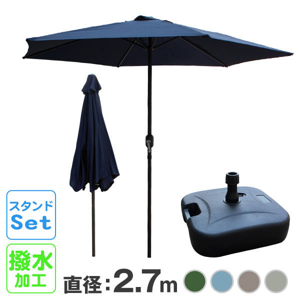 ガーデンパラソル スタンドセット 角型 幅270cm 高さ237cm 撥水加工 ビーチパラソル 庭 ガーデニング キャンプ 日傘 折りたたみ日 よけ