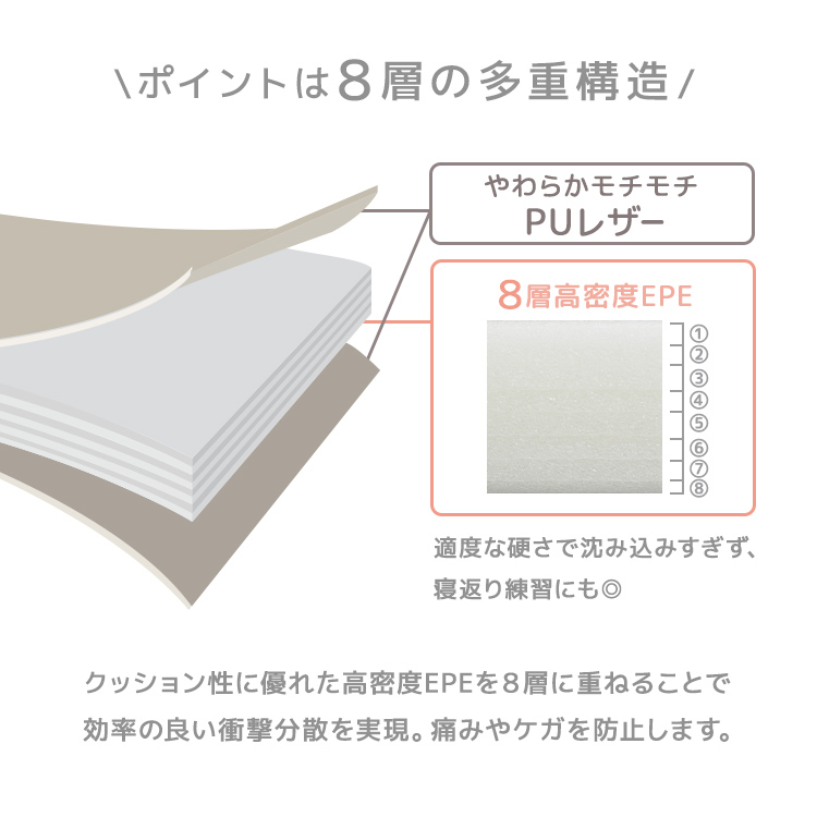 衝撃をしっかり吸収し、お子様が転んでもケガを防げます。