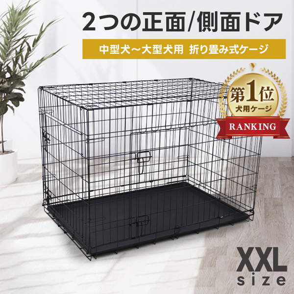 ペットケージ 折りたたみ XXLサイズ 大型犬 引き出しトレー ダブルドア ペットサークル 室内 中型犬 犬小屋 ケージ 犬 ペット 大きめ 特大 ゲージ 犬用品