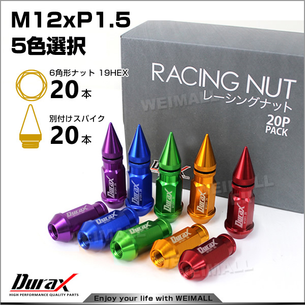 ホイールナット レーシングナット スパイク M12×P1.5 ロング 自動車 貫通 Durax
