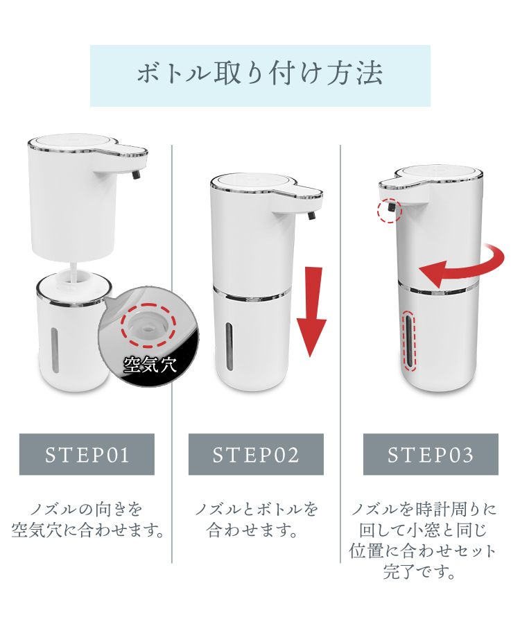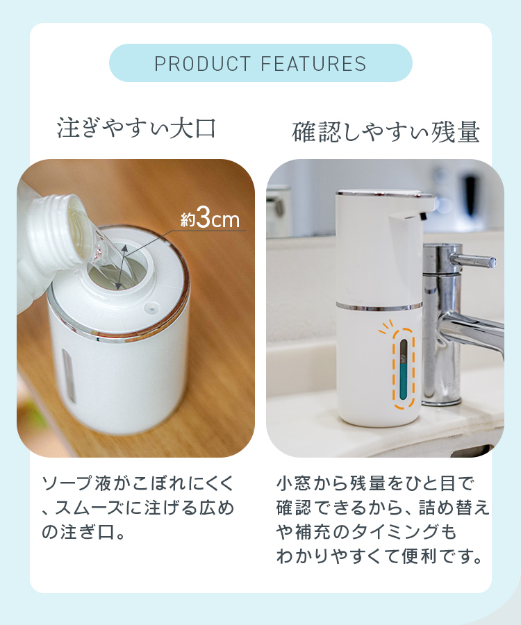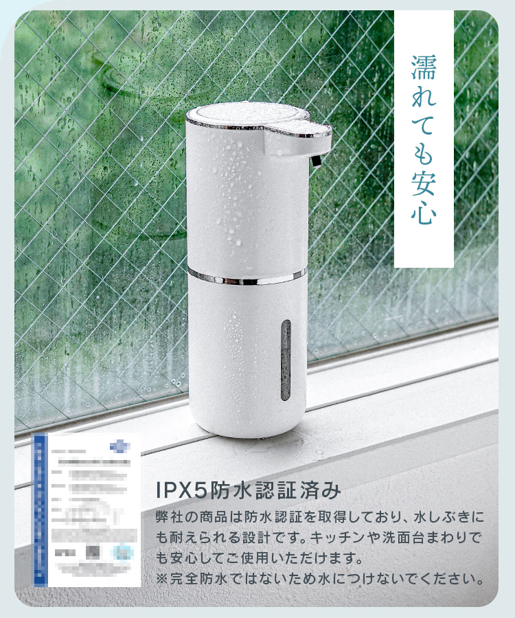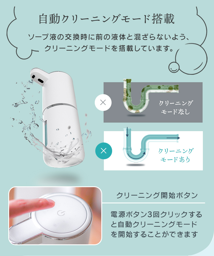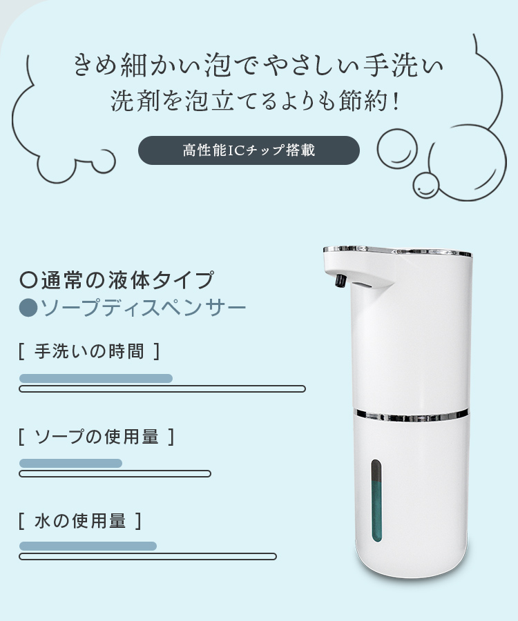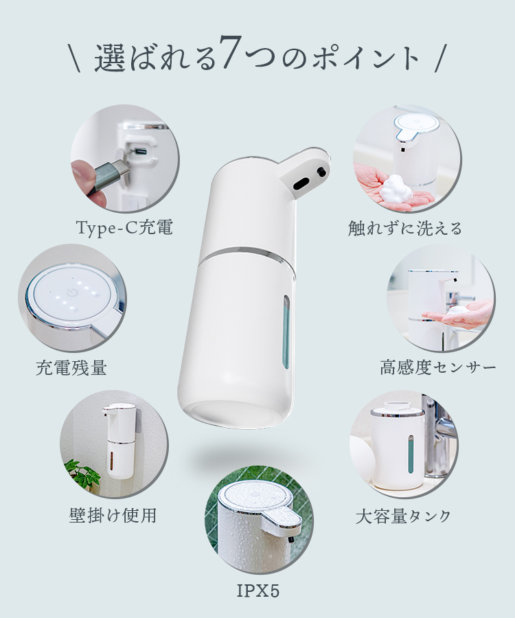 ソープディスペンサー 自動 壁付け 泡 充電式 非接触 センサー式 大容量防水 市販ソープ対応 吐出量調整 手洗い 予防 自動洗浄 洗面台 スマート 充電式