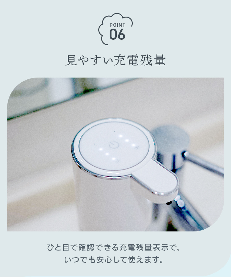 ディスプレイには吐出量とバッテリー残量が表示され、一目で状態を確認可能。