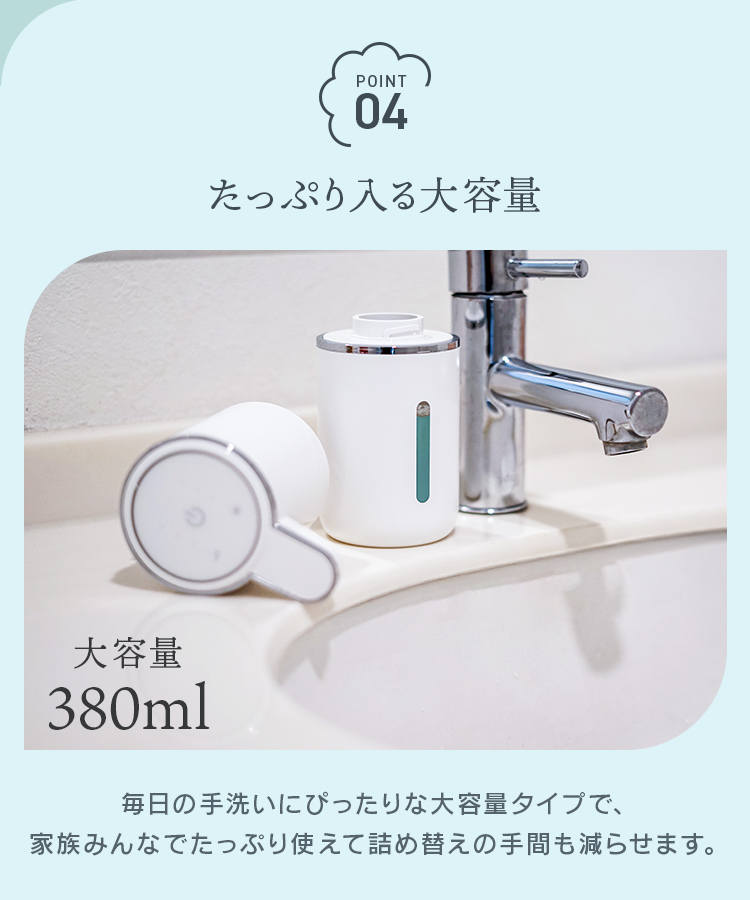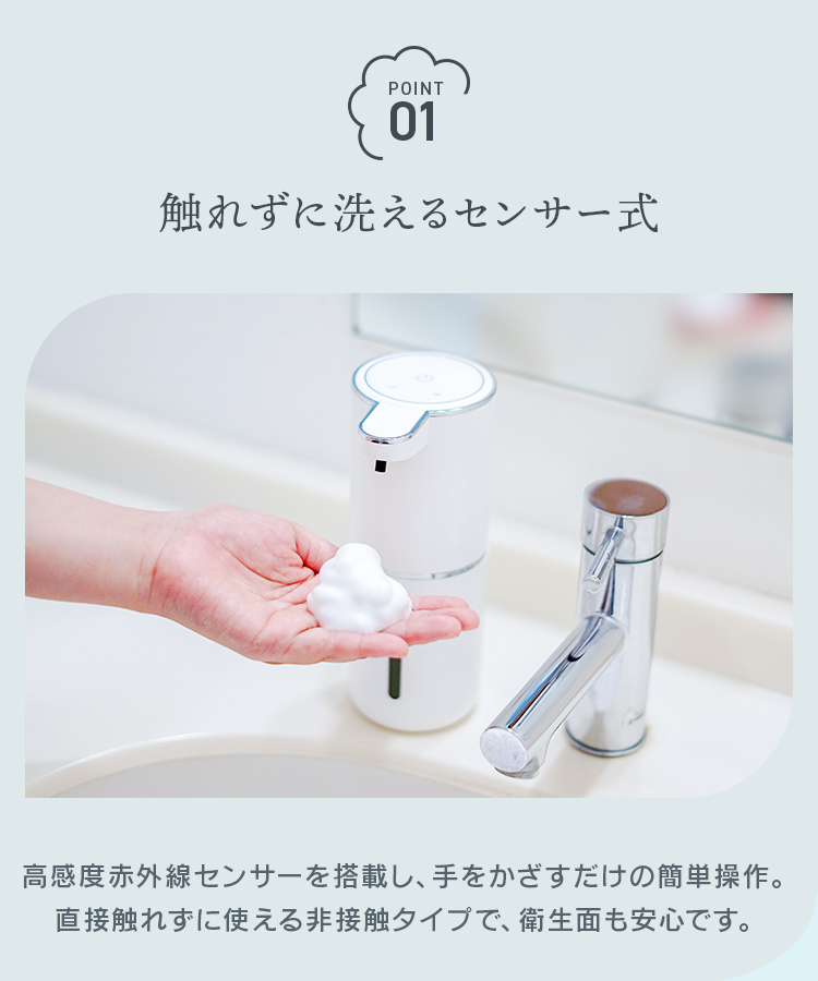 センサー式で手をかざすだけで、自動的に泡が出てくる。