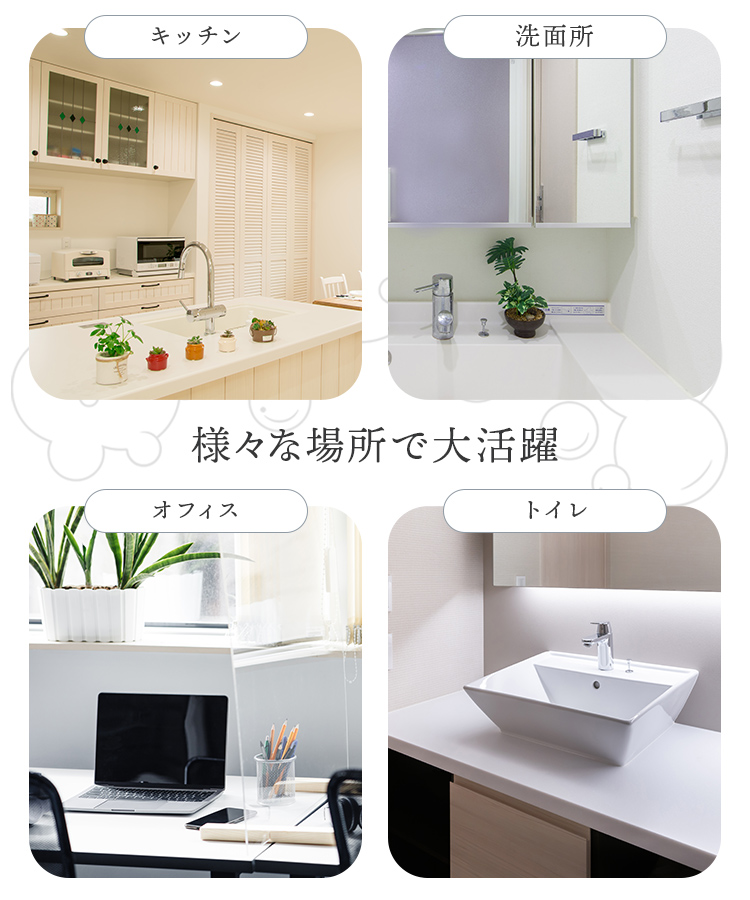 ご家庭の洗面所やキッチンはもちろん、オフィスや店舗、医療施設、公共スペースなど多様な場所でも活躍します。
