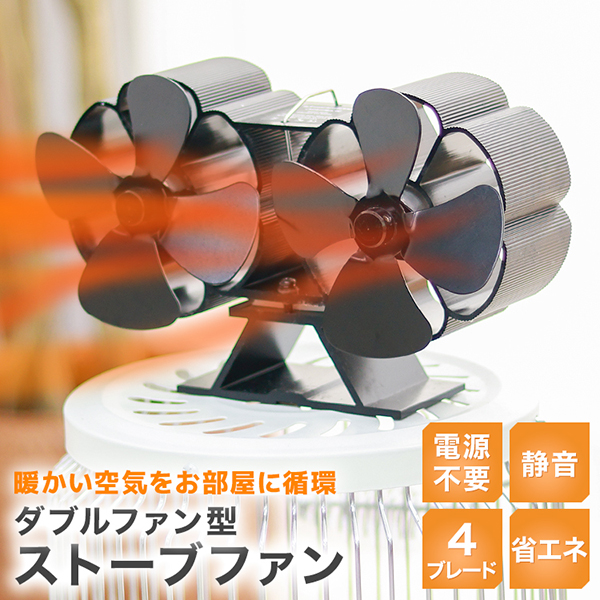 ストーブファン エコファン ダブルファン 電源不要 省エネ 静音 小型 火力ファン 石油ストーブ 薪ストーブ 灯油ストーブ 空気循環 換気 ストーブ 冬キャンプ