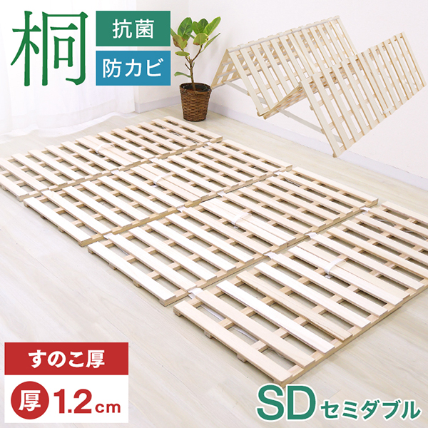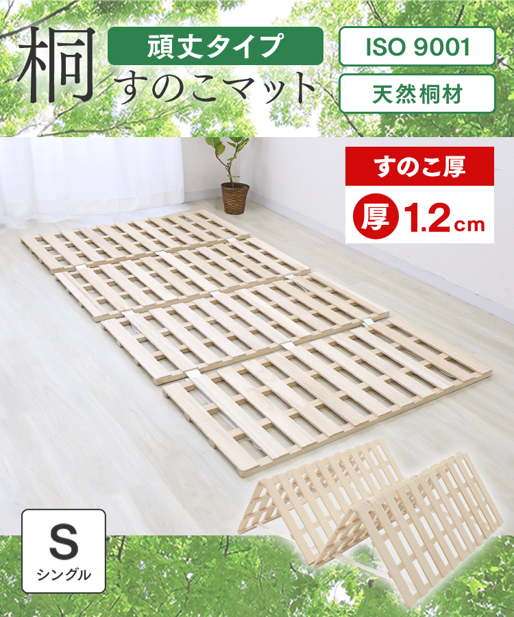 すのこベッド シングル 四つ折り カビ対策 厚さ1.2cm 頑丈 湿気対策 通気性 抗菌 スノコ ベッド すのこマット 折りたたみ 桐 布団 天然桐 溝 リブ加工 除湿