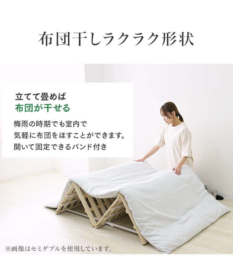 4つ折りなのでそのまま布団を簡単に室内干しができ、未使用時もコンパクトに収納可能。