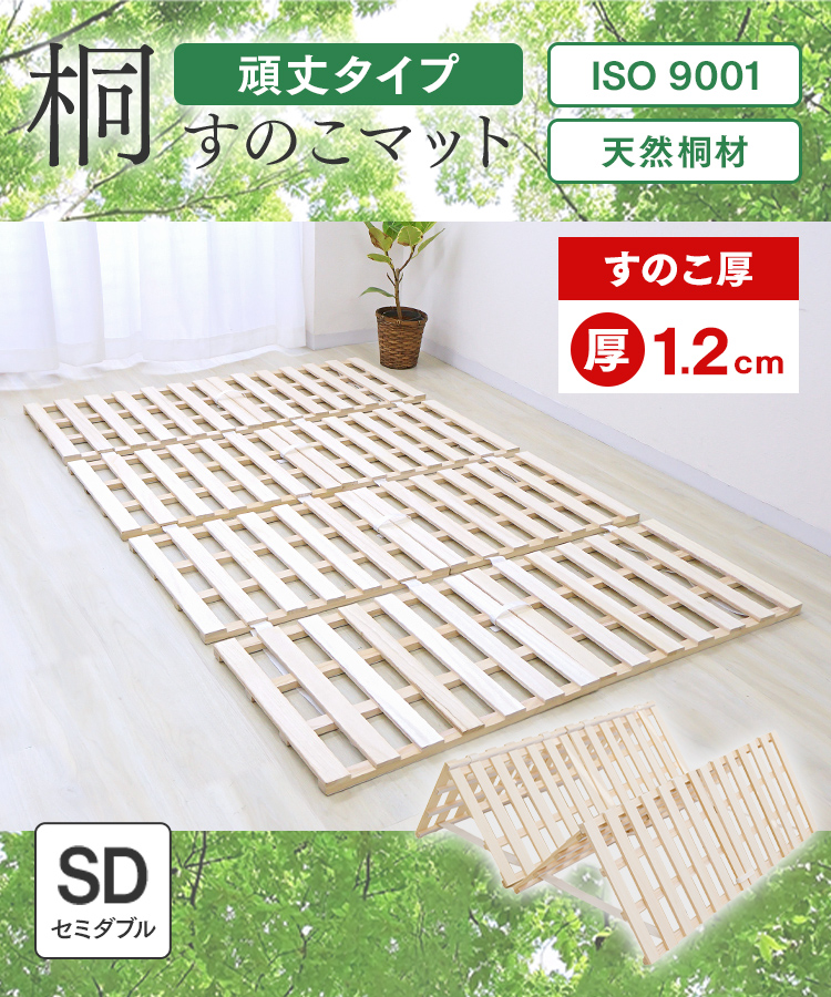 すのこベッド セミダブル 四つ折り カビ対策 厚さ1.2cm 頑丈 湿気対策 通気性 抗菌 スノコ ベッド すのこマット 折りたたみ 桐 布団 天然桐 溝 リブ加工 除湿