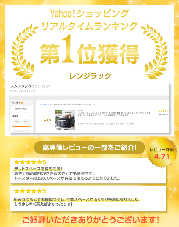 電子レンジの上を便利な収納スペースに変える伸縮式レンジラック!