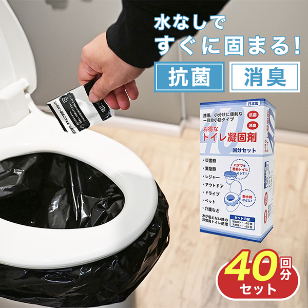 簡易トイレ 防災セット 非常用 凝固剤 災害用 トイレセット 40回分 防災グッズ テント アウトドア 登山 携帯トイレ トイレ凝固剤 介護 防臭袋 非常用簡易トイレ